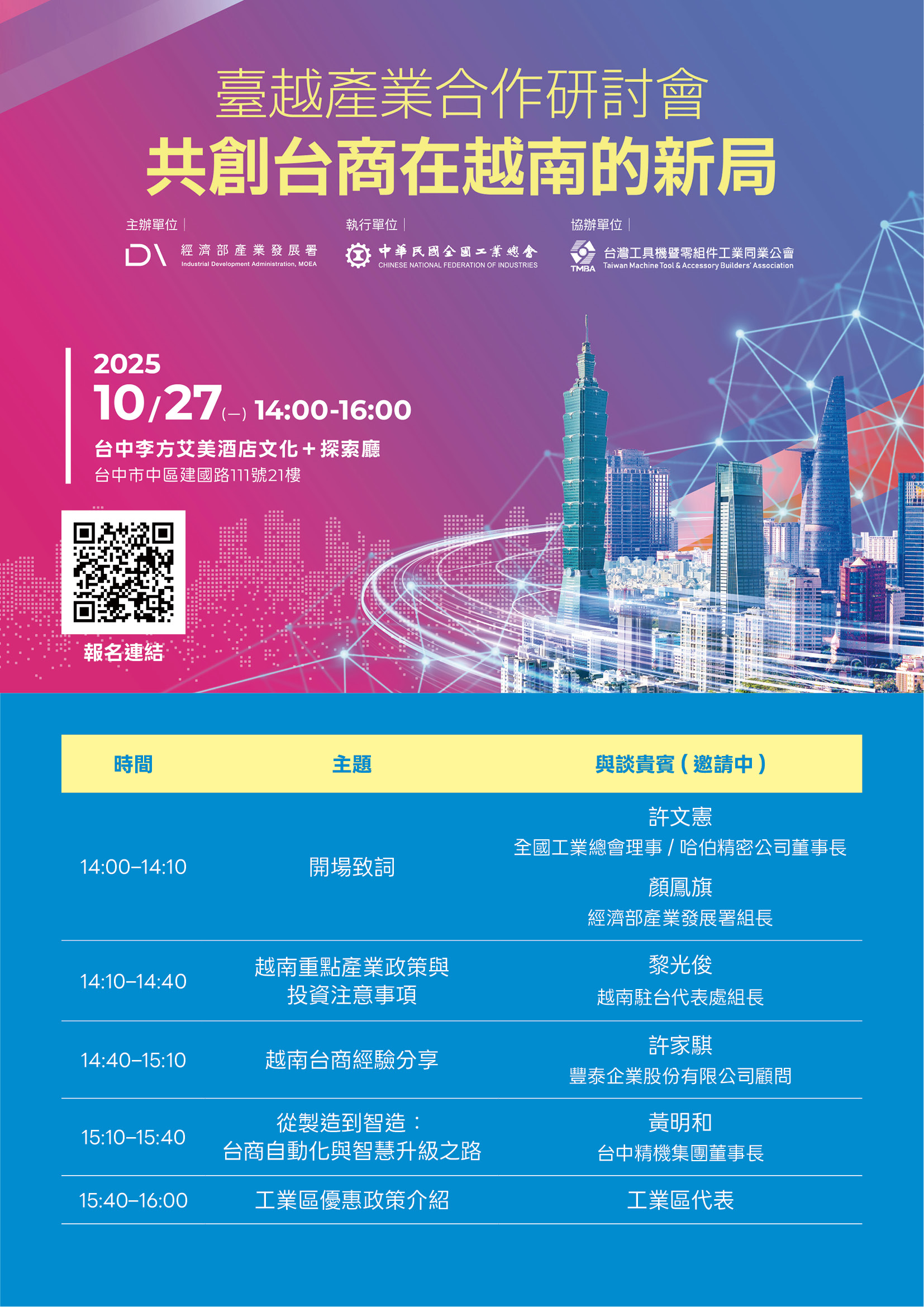 (轉發) 10/27 產發署-臺越產業合作研討會
