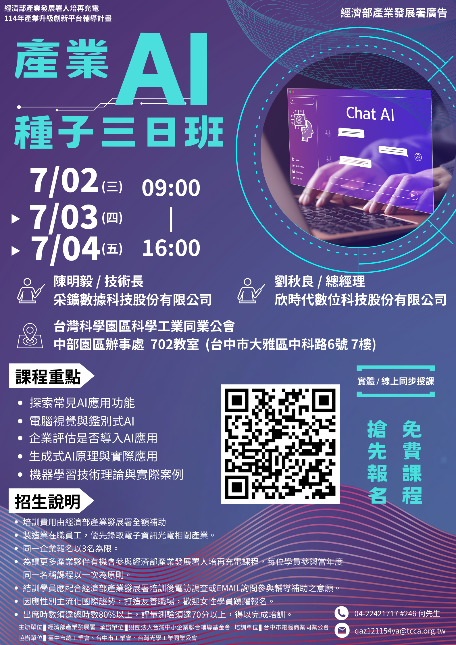 (轉發) 6月、7月 產業AI種子三日班