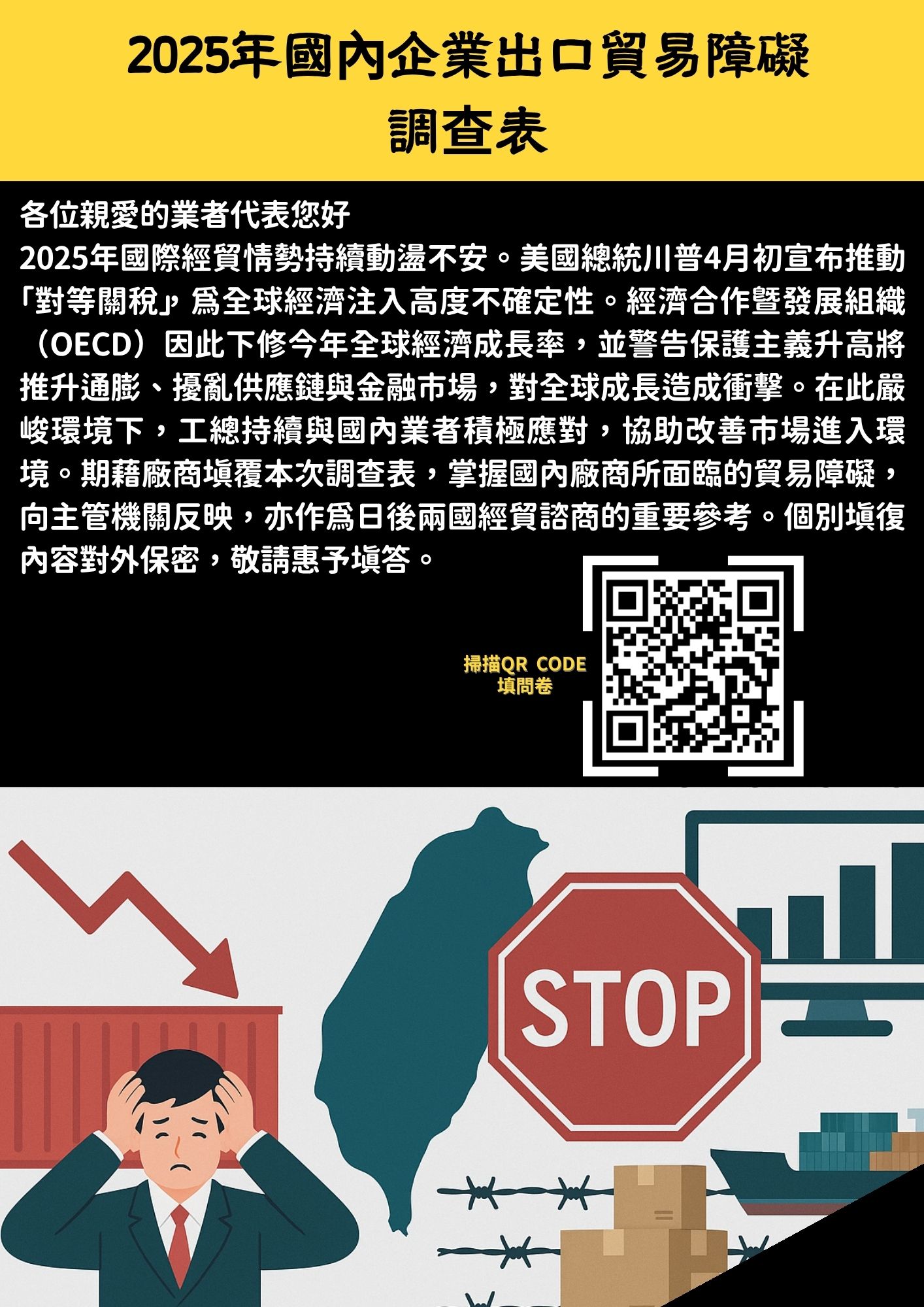 (轉發) 工總-2025國內企業出口貿易障礙調查表