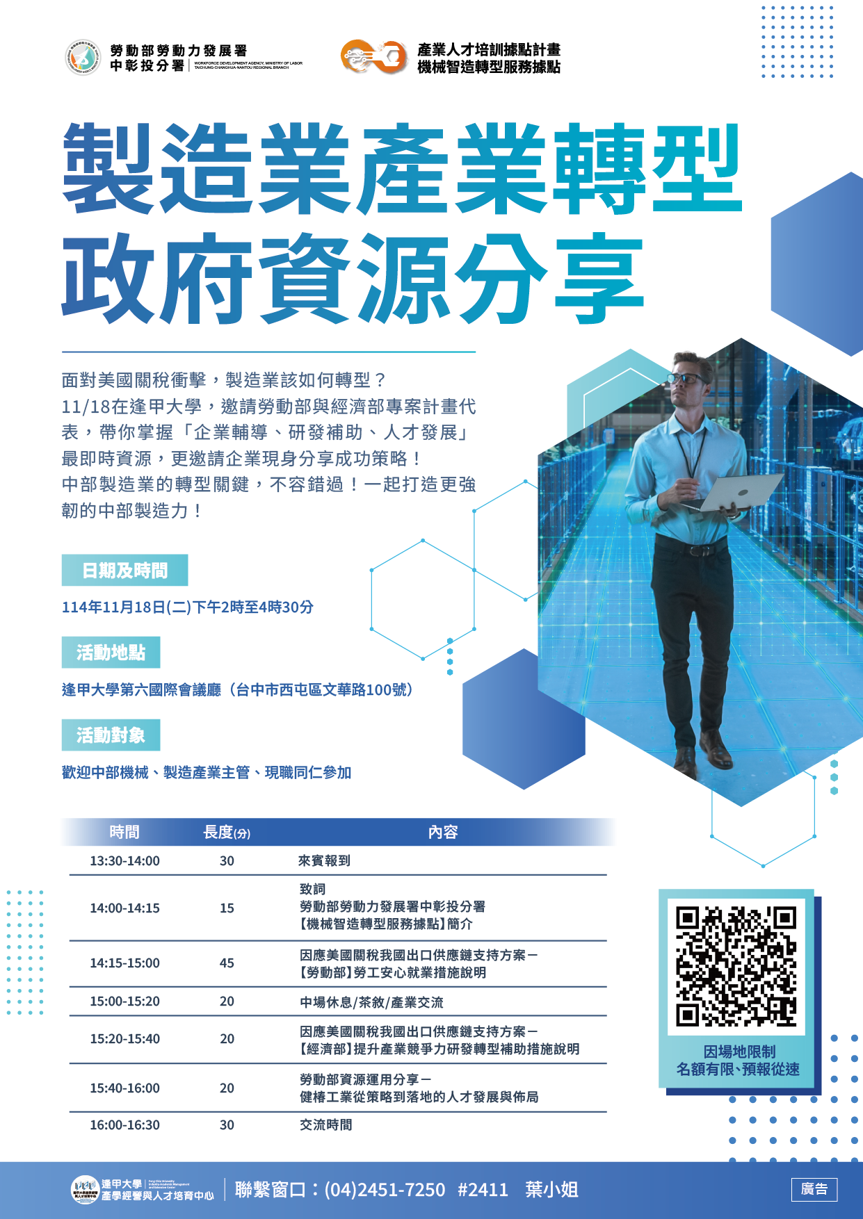 #製造業轉型 #政府補助 #勞動部資源 #中部製造 #逢甲大學