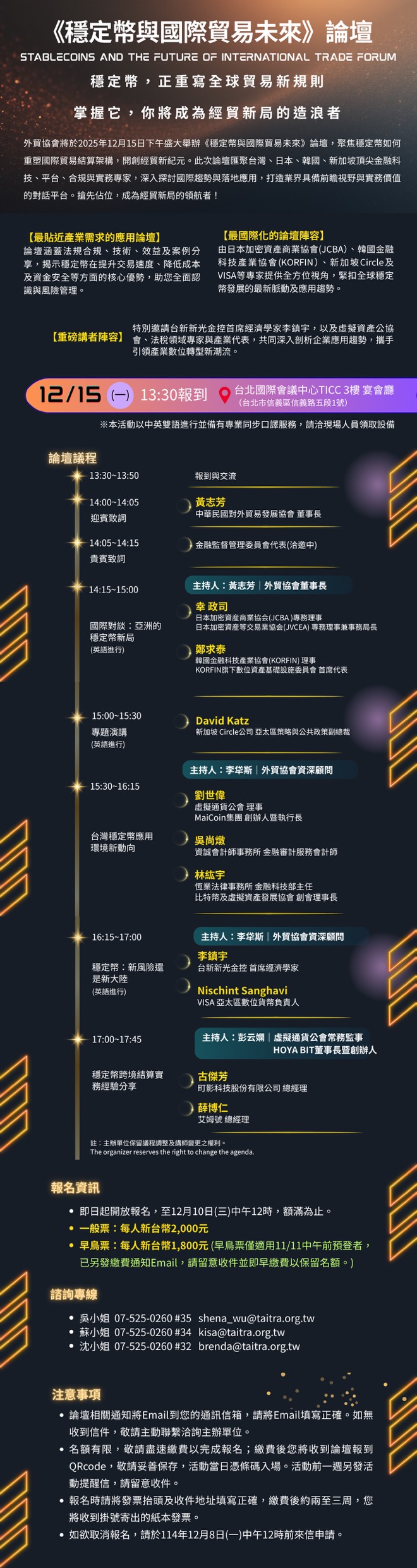 (轉發) 12/15 外貿協會-穩定幣與國際貿易未來論壇