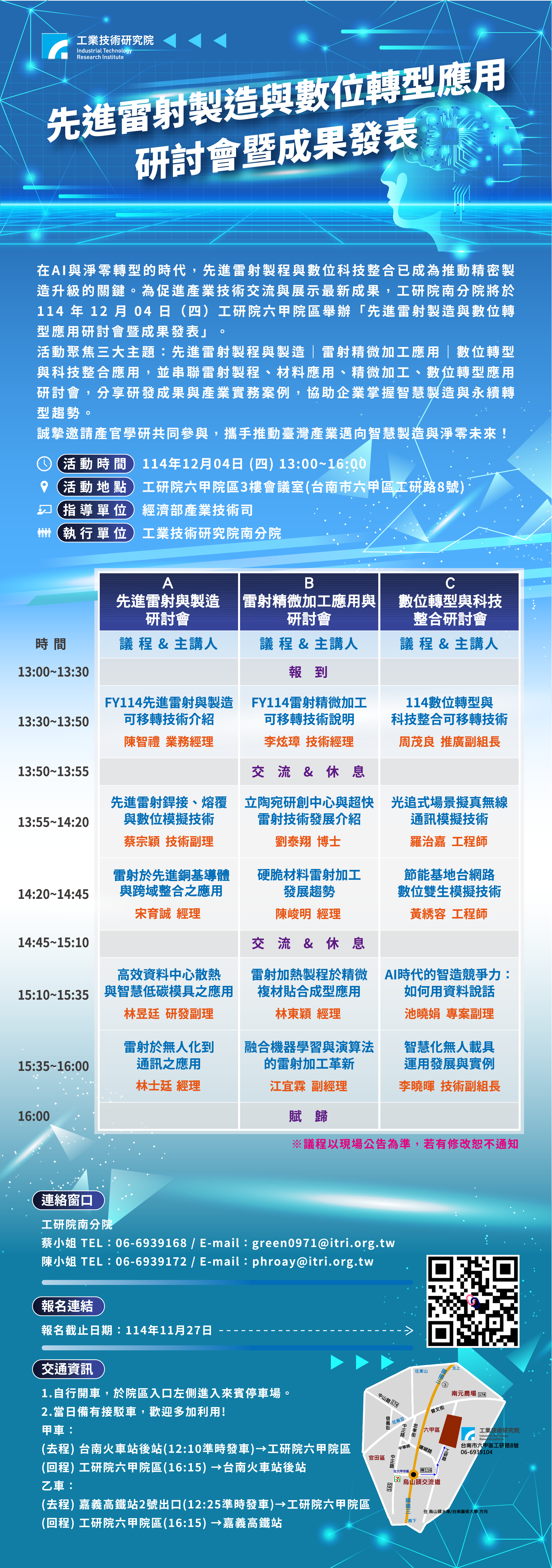 📢 12/4 工研院|先進雷射製造與數位轉型應用研討會暨成果發表
