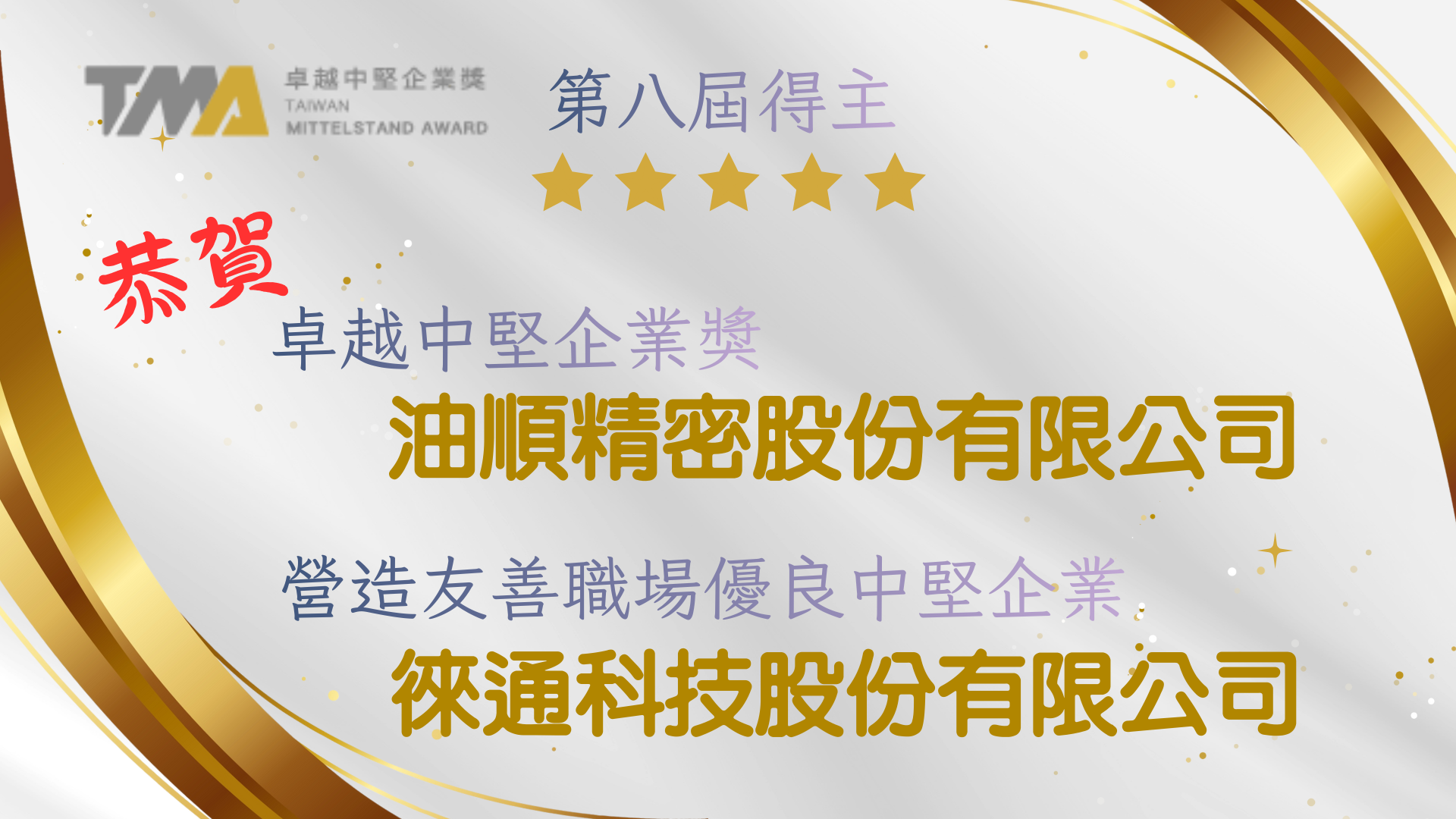 油順精密股份有限公司 獲得卓越中堅企業獎獎
