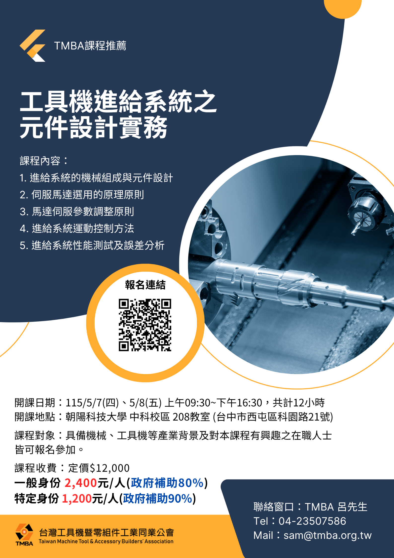 課程洽詢:TMBA呂先生、04-23507586、sam@tmba.org.tw