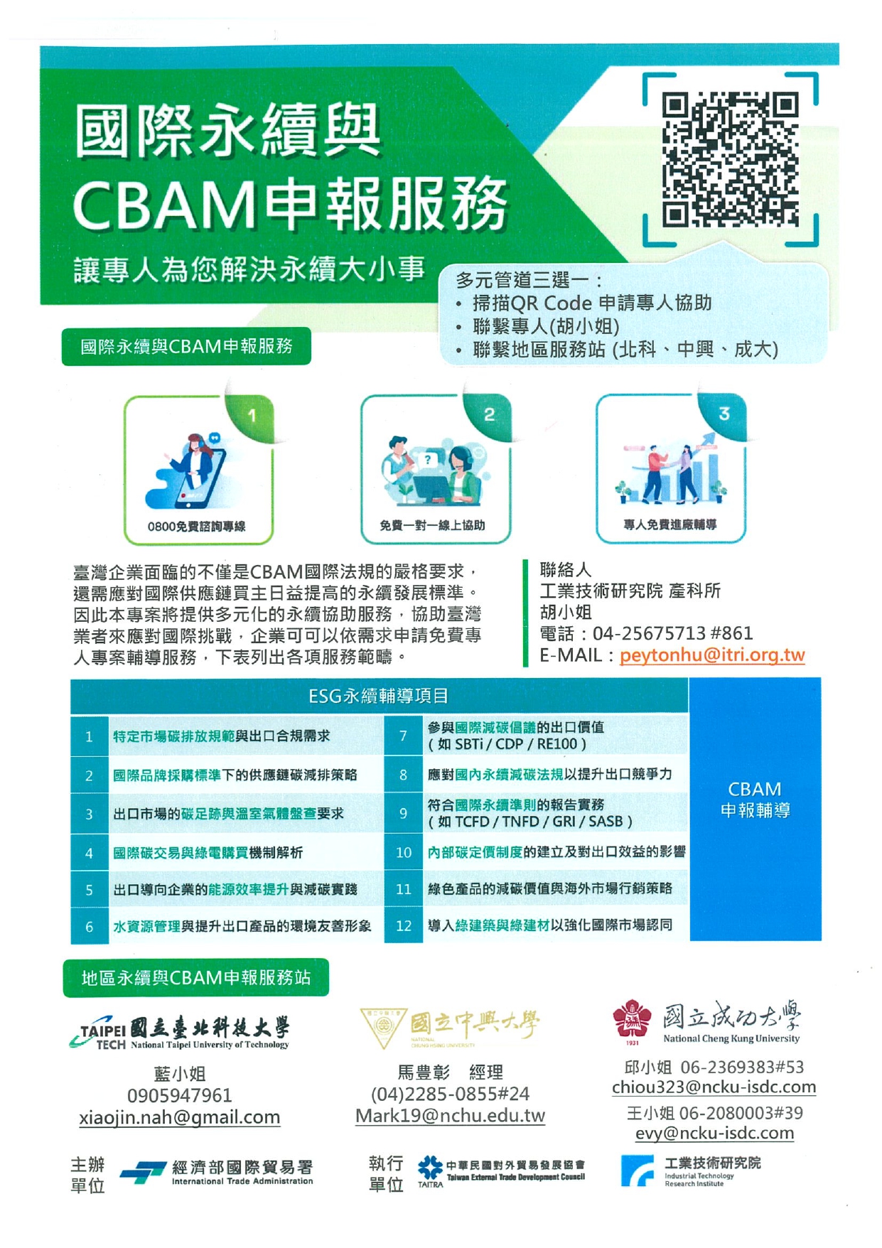 (轉發) 工研院「國際永續與 CBAM 申報服務」開放申請
