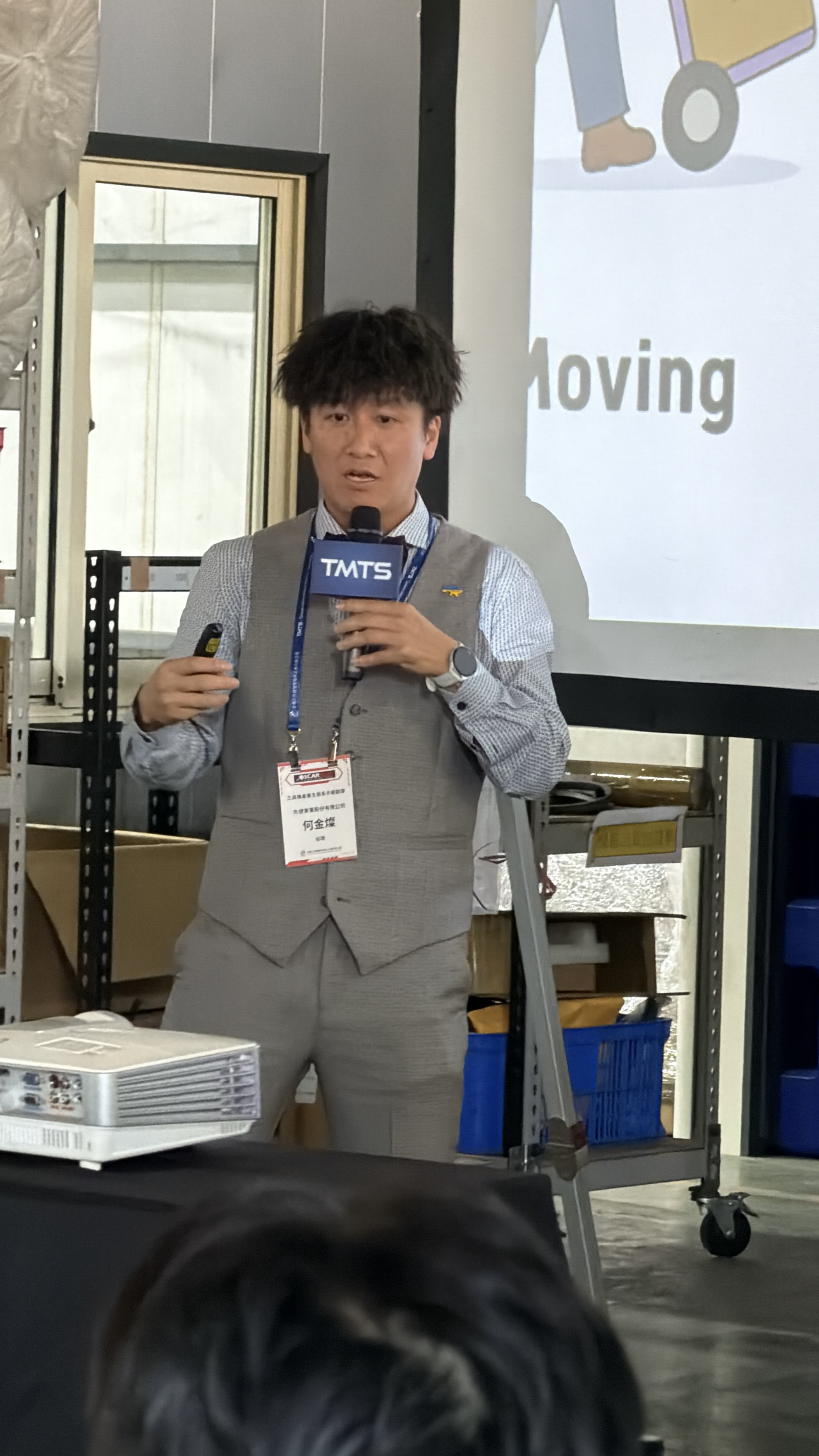 本次觀摩以 「AI 賦能 × FMS × Robot × 高附加價值解決方案」 為主軸,由先捷實業何溢桐總經理開場歡迎,先捷團隊分享智慧製造從前端資訊整合到後端管理的完整流程。