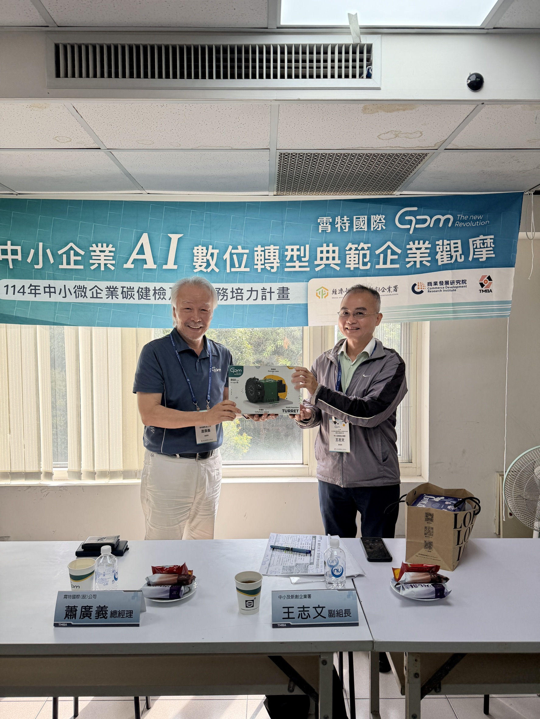 活動最後,蕭廣義總經理特別將 霄特刀塔積木模型 贈送給中企署長官,讓長官體驗刀塔組裝,以及工具機零組件的精密能量,也為本次參訪活動畫下歡樂又有意義的句點。